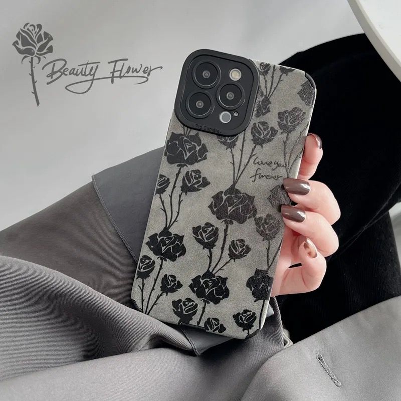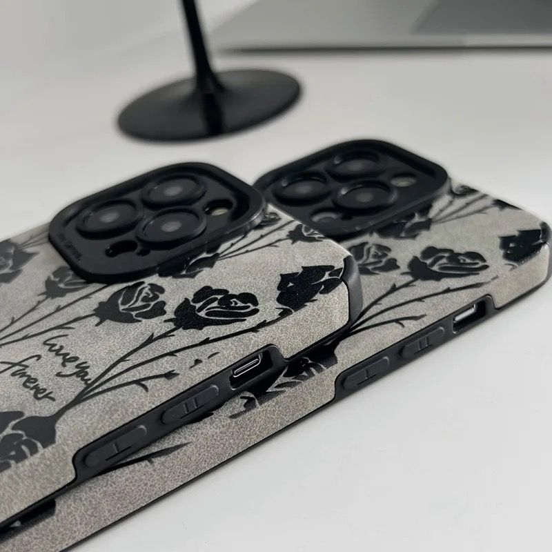 Black Rose Love Leather iPhone Soft Textured Silicone Case