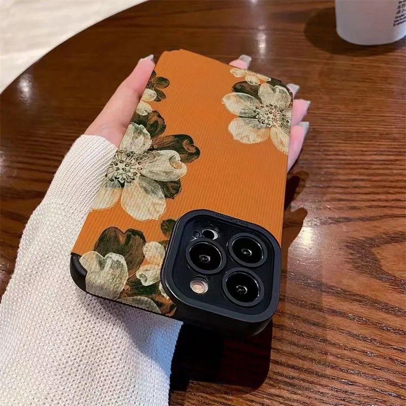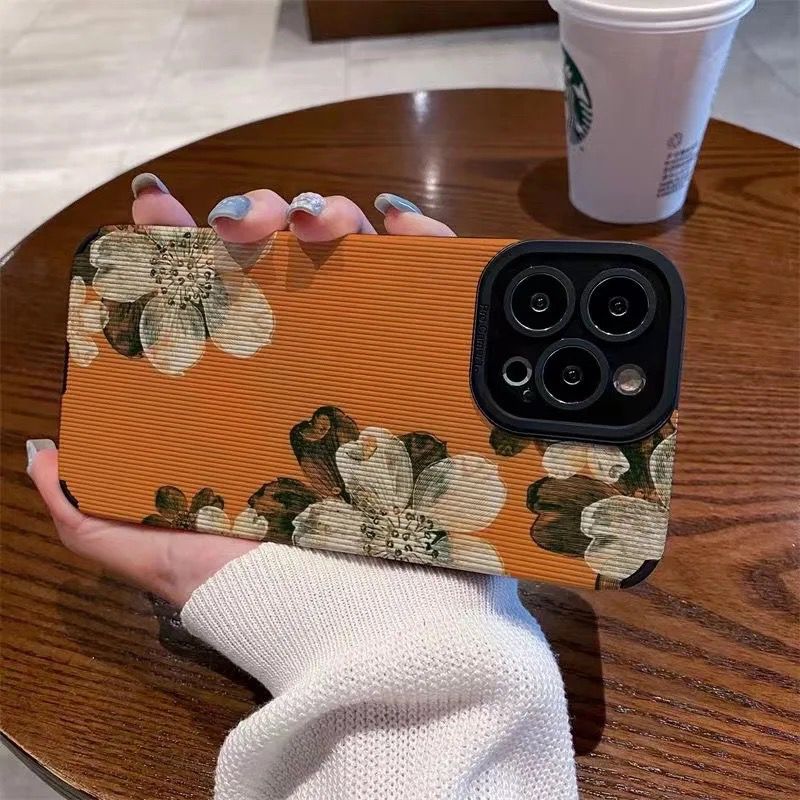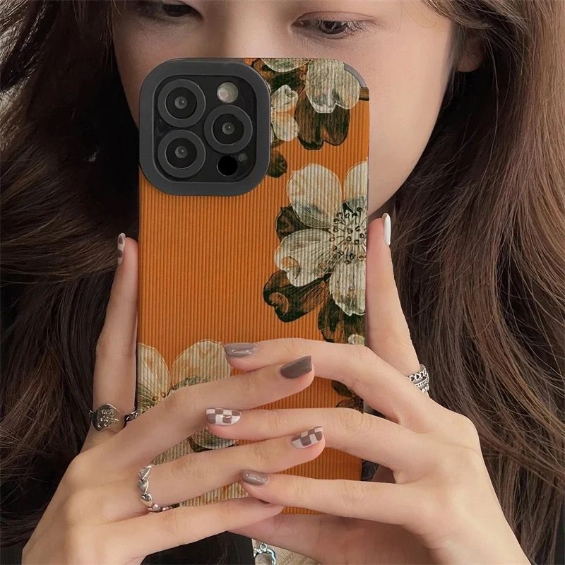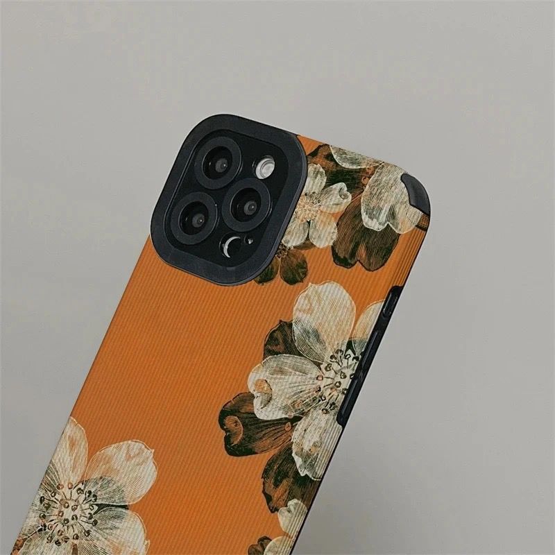 Orange Floral Flower iPhone Textured Silicone Case